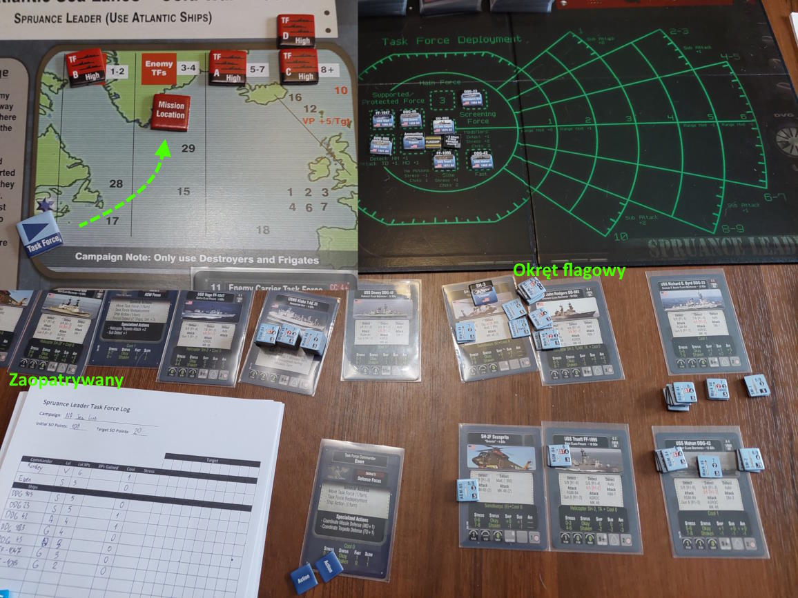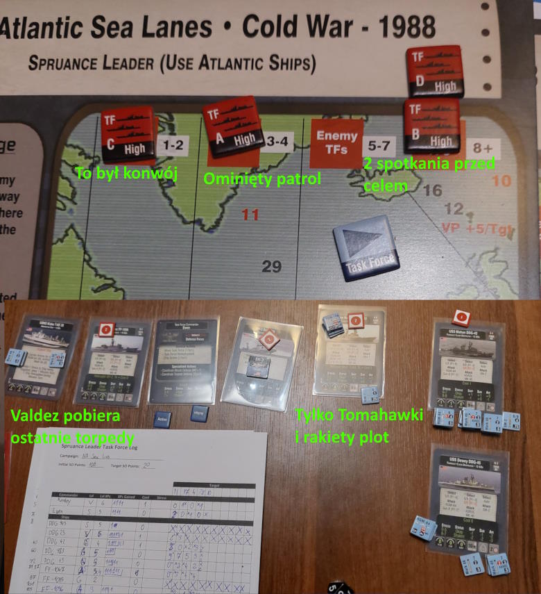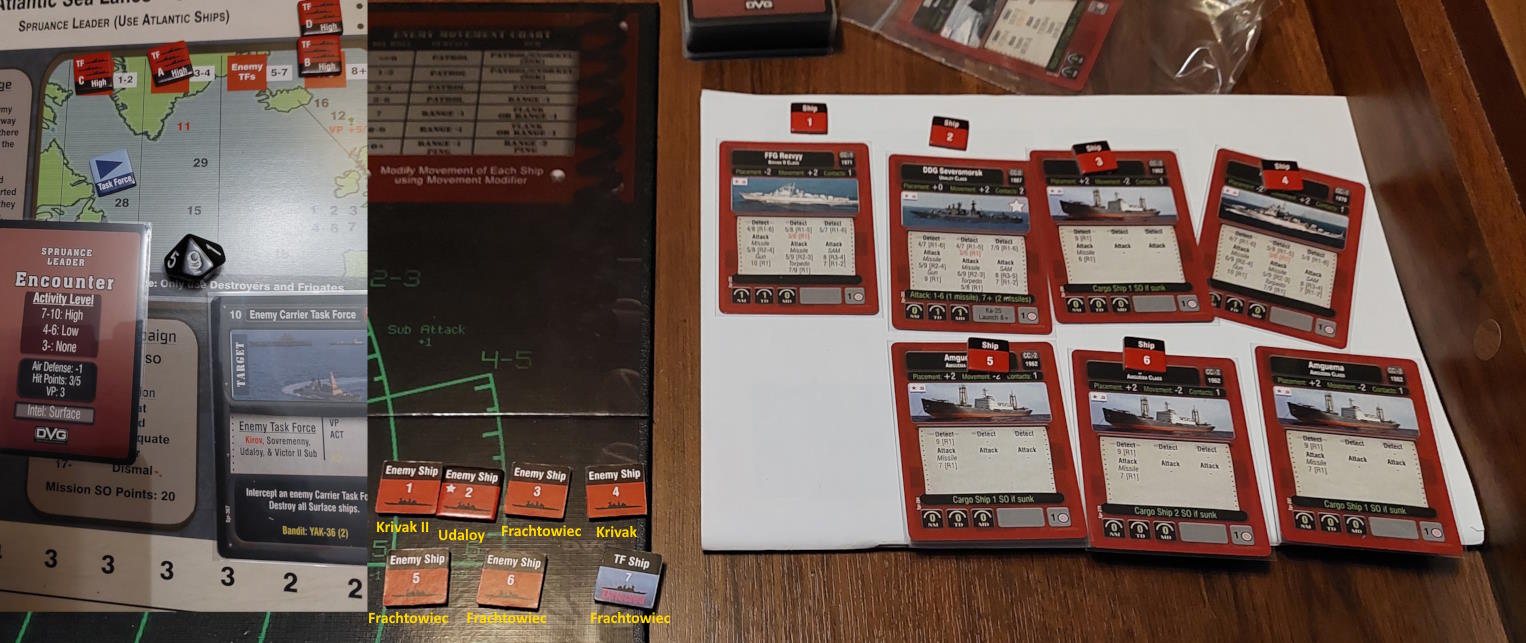 Przy wsparciu samolotów z lotniskowca przejście większości Atlantyku było bezproblemowe. Omijaliśmy wszelkie okręty podwodne wroga (zostawiając je dla sił ZOP), uzupełniając amunicję na okrętach.
