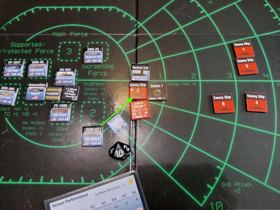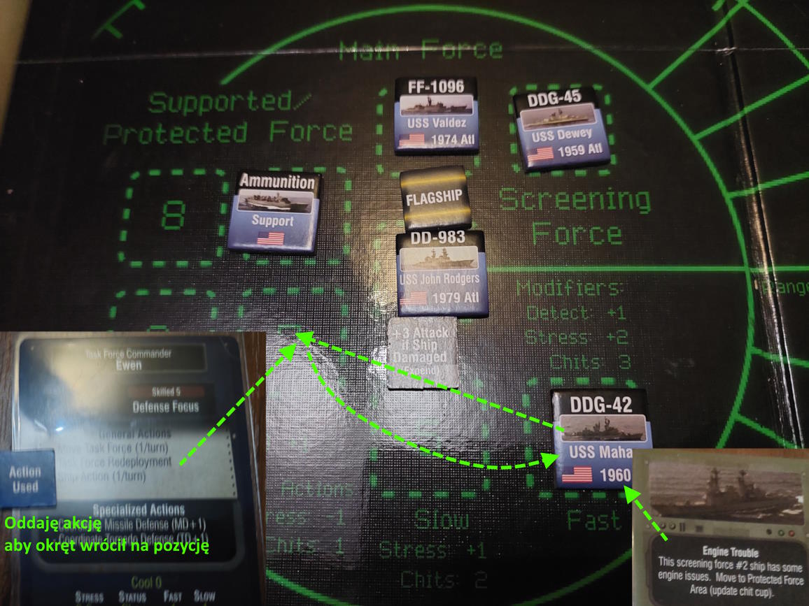 Żeton na USS John Rodger daje aktywowaną, jednoturową premię do ataków, gdy okręt jest uszkodzony