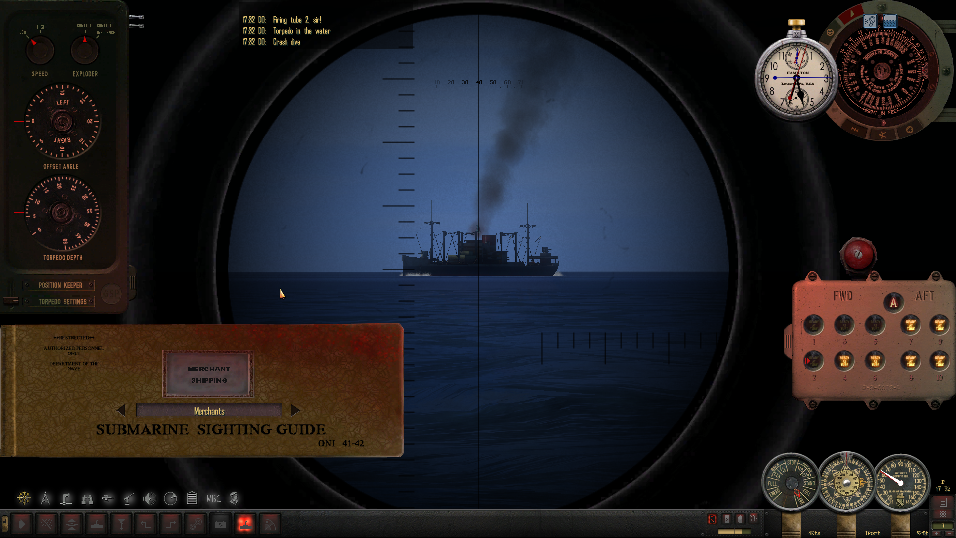 Powracamy na miejsce patrolowe, mając w zapasie jedynie 3 torpedy, z tego 2 rufowe, licząc jeszcze na jakiś samotny łup.
