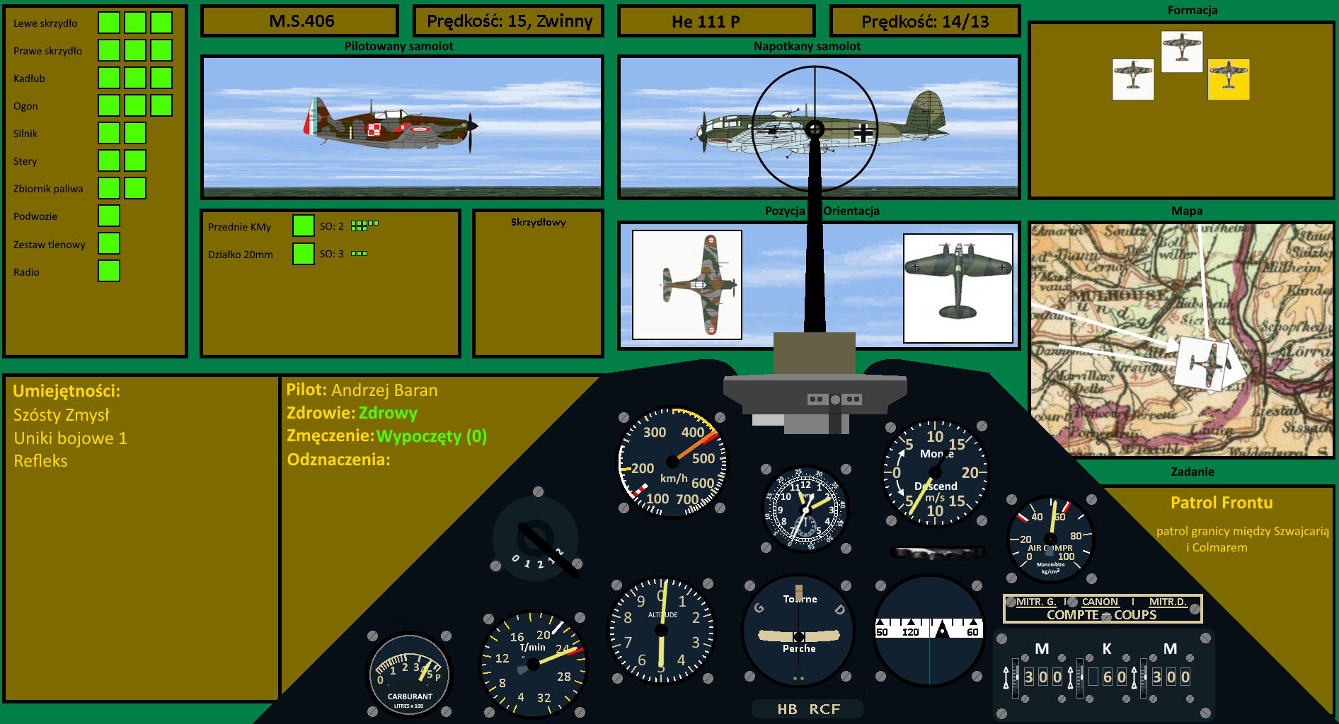 O poranku na odprawie kapitan Papin kolejno wyznaczał klucze do lotu. Polski klucz miał od 9:00 czekać w dyżurze, gdy patrol wykonywał klucz dowodzono przez chorążego Vallentina i na 10:45 wyznaczony był start polskiego klucza do patrolowania granicy między Szwajcarią i Colmarem, a w pogotowiu, gotowi do następnego lotu mieli czekać podporucznik Gryuelle z sierżantami De-Fraville i Passemard.