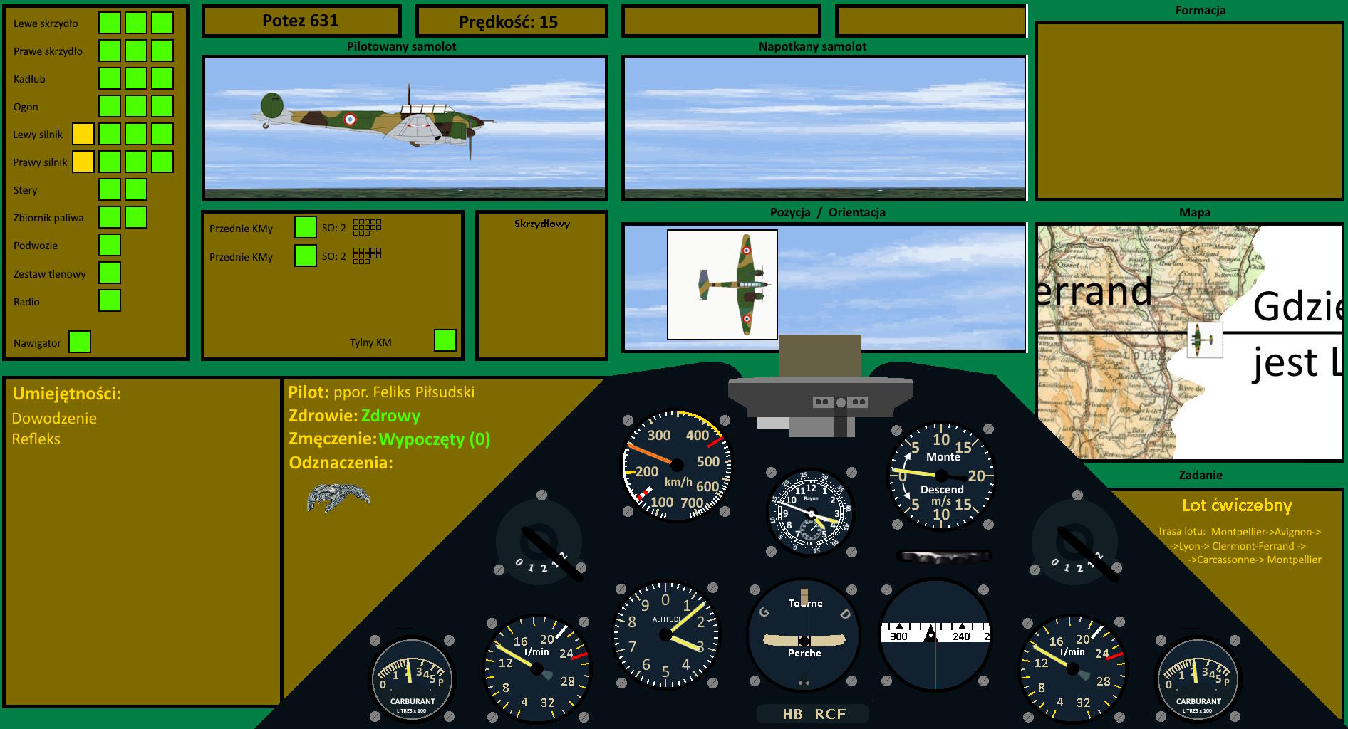 Feliks tymczasem przygotował się do tych figur, które nie powodowały zbytniego przeciążenia do dołu. Ogólnie maszyna sprawowała się dość dobrze i na pewno będąc bardziej świeżym innym razem Feliks sprawdzi, co ona potrafi. Porucznik kazał wrócić do Monpellier na dużej wysokości i gdy Feliks już szykował się do schodzenia kręgami, porucznik powiedział: