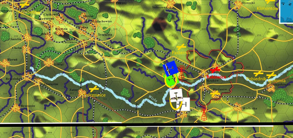 -Klin 1 ustawić się między Skawiną, a Wisłą, Klin 2 między Bielanami, a Balicami. Atakować ich, gdy tylko opuszczą obszar Krakowa!