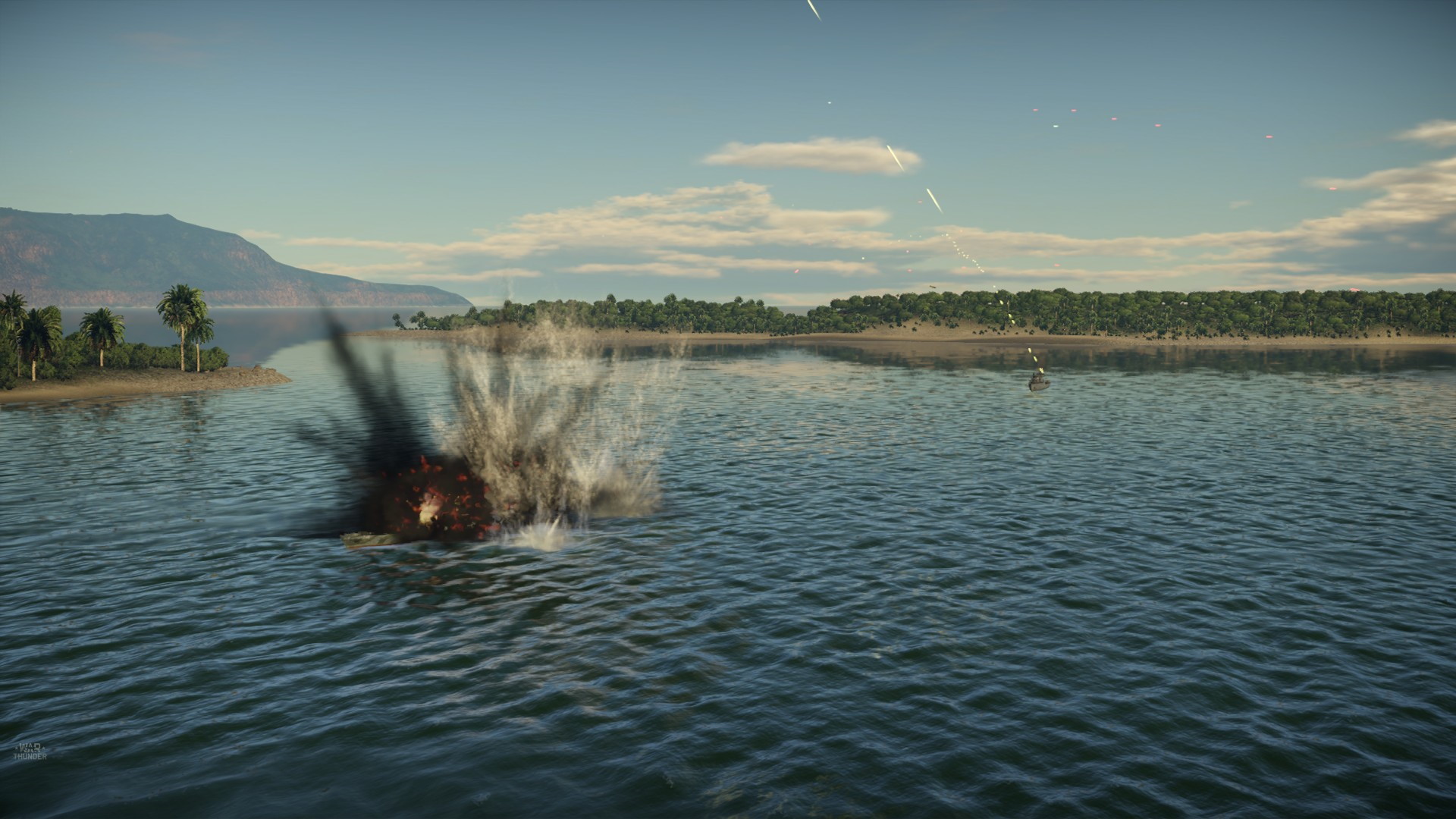 ... i ogień zgasł, a gracz próbował ratować się nurkując - brak oznak uszkodzeń. Wreszcie celna seria, odcięty ogon i bum.