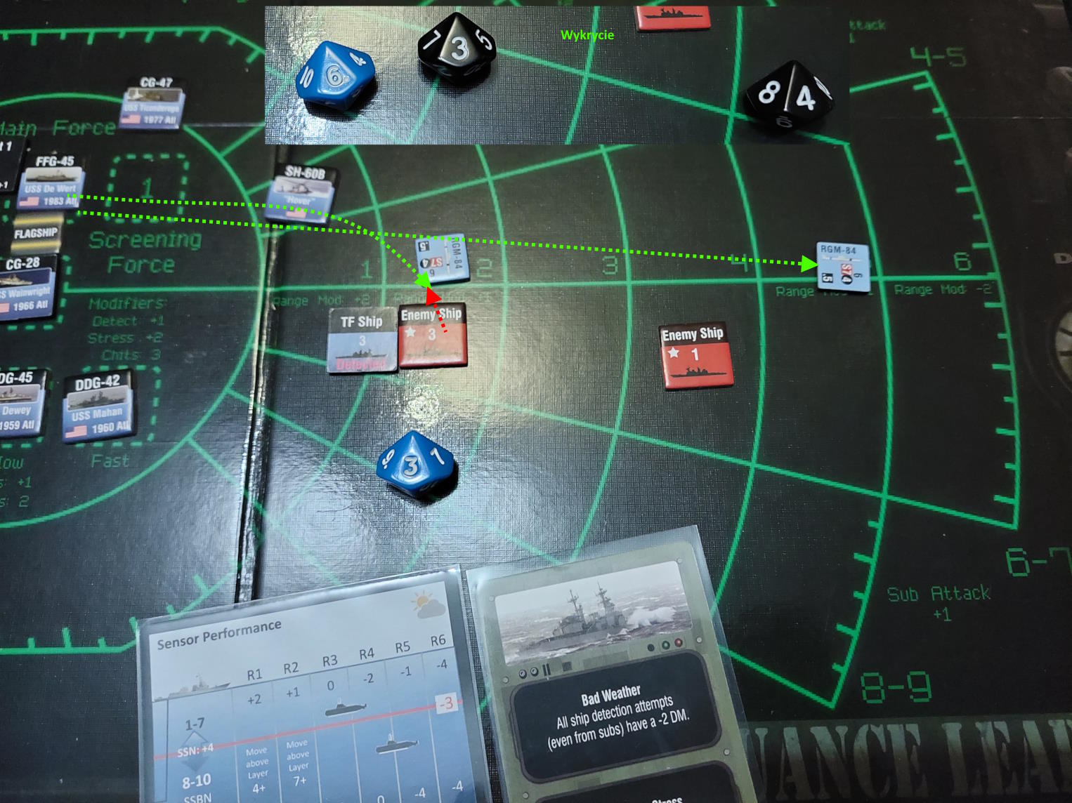 Nie był to jednak koniec walki. Wiedzieliśmy, że część sił wroga jest w pobliżu. Aby skłonić ich do zdradzenia swojej pozycji wystrzeliliśmy Harpoony w ustawieniu na poszukiwanie nieprzyjaciela.