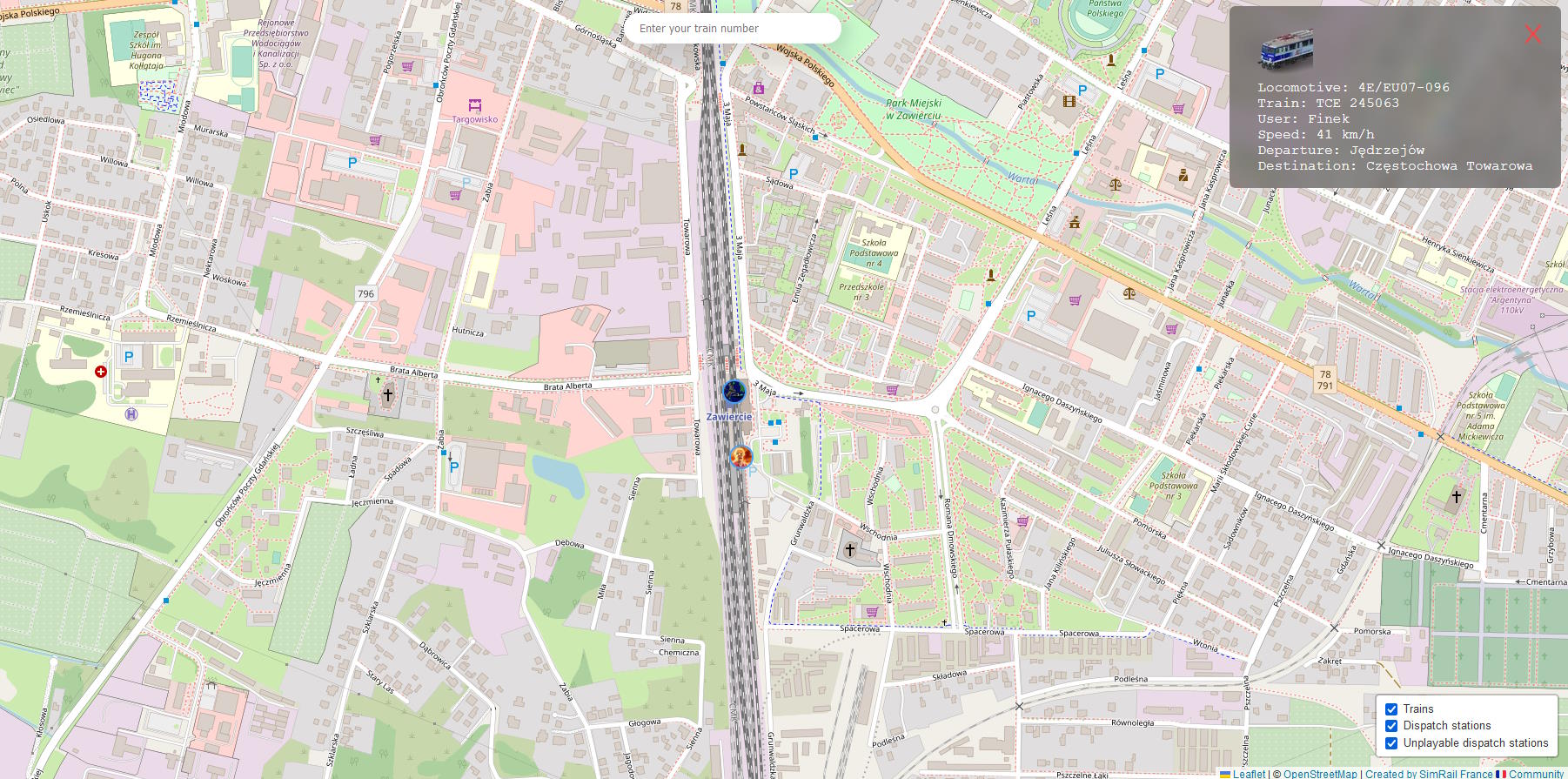 Do Dąbrowy Górniczej zmniejszyłem opóźnienie do 13 minut... ale tu znów był ustawiony towarowy w poprzek i musiałem go przepuścić