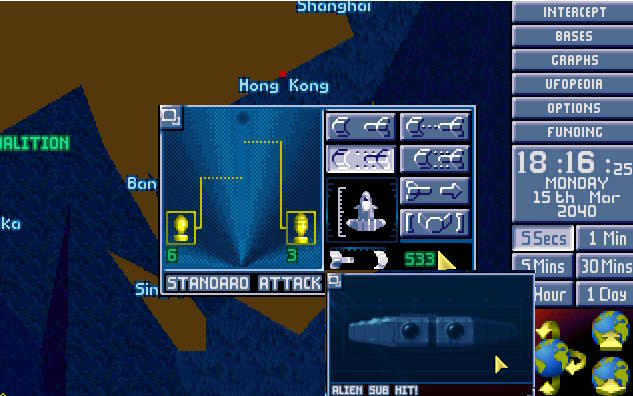 Tymczasem w Nowy Rok 2040 doszło do pierwszego aktu agresji spod wody. W pobliżu bazy X-COM przepływał liniowiec Hyperion w rejsie z Europy do Ameryki...