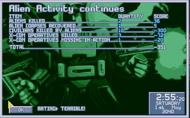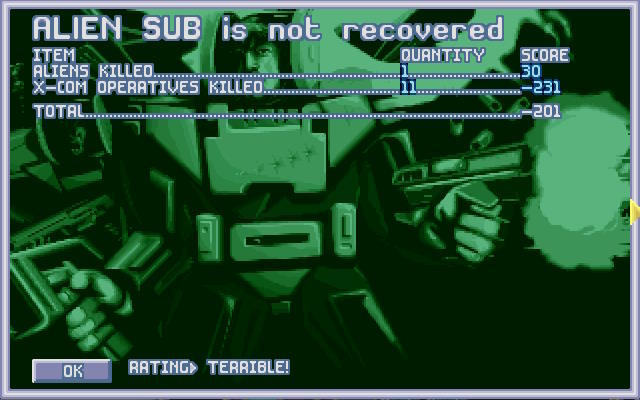 Raport z misji trafił do wszystkich znaczących rządów Ziemi, potwierdzając, że atak nie był dziełem człowieka, a obcej rasy, której jeszcze nie spotkano. Czyżby podczas inwazji obcy uderzyli też pod wodę i ich przegapiliśmy? Jeszcze tego samego dnia wieczorem projekt X-COM został oficjalnie wznowiony pod nadzorem Komitetu Obrony Ziemi.