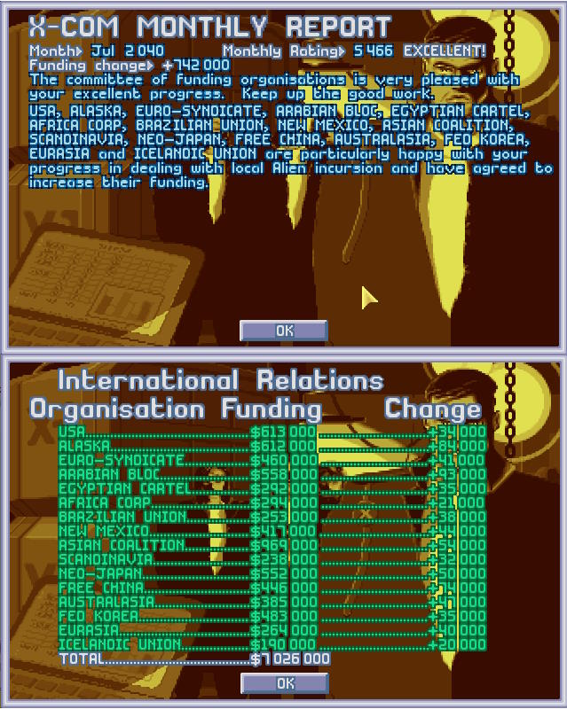 Spotkanie z Komisją było owocne, jednak była w nim pewna kropla goryczy. Pomimo najlepszego wyniku X-COM w całym roku, Skandynawowie byli zdania, że obcy tylko na razie sondują nas, a ich jedno uderzenie pokazało, że jak uderzą z pełną siłą, ludzkość nie poradzi sobie i że teraz, gdy osiągamy sukcesy należy rozpocząć rozmowy, a nie wtedy, gdy nas pokonają. Szczęśliwie poza wpływem na Kartel Egipski, który postanowił utrzymać finansowanie na obecnym poziomie, pozostali członkowie rady zwiększyli finansowanie X-COM.