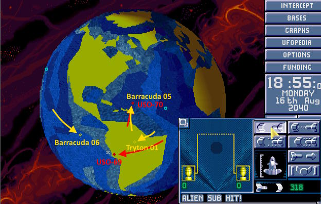 Tryton, łódź transportowa X-COM dotarła nad ranem w pobliże miejsca zatopienia, gdzie wdała się w walkę z obcymi. Dieter Hofner dostał zaszczyt bycia pierwszym Aquanautą, który zabił obcego, a Stefan Berger zdobył niechlubny zaszczyt bycia pierwszą ofiarą reaktywowanego projektu X-COM...