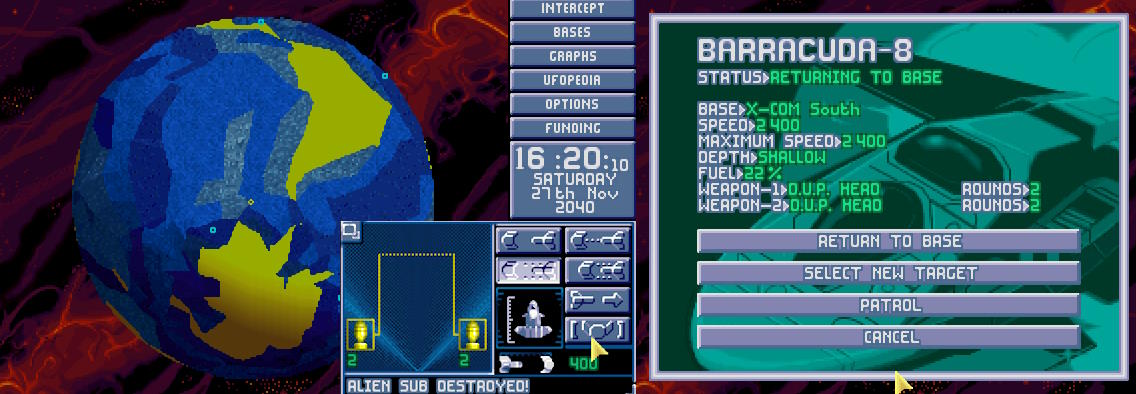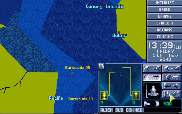 Barracuda 01 (ex HMS Unicorn) wracała właśnie z patrolu Falklandy - 0NOE - Morze Śródziemne, gdy na sonarze wykryto dziwną transmisję. Sensory wykazały, że w pobliżu Lizbony pod wodą znajduje się obiekt podobny do tego, który zatopił Hyperiona. Kapitan zameldował do bazy X-COM, że nie ma energii, aby sprawdzić ten kontakt.