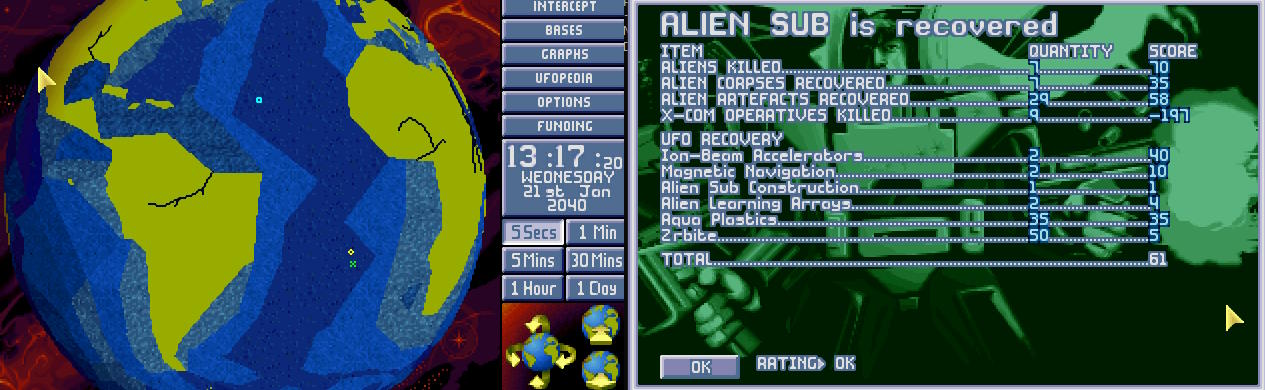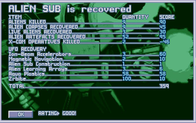 Raport z misji trafił do wszystkich znaczących rządów Ziemi, potwierdzając, że atak nie był dziełem człowieka, a obcej rasy, której jeszcze nie spotkano. Czyżby podczas inwazji obcy uderzyli też pod wodę i ich przegapiliśmy? Jeszcze tego samego dnia wieczorem projekt X-COM został oficjalnie wznowiony pod nadzorem Komitetu Obrony Ziemi.