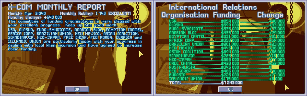 Spotkanie z Komisją było owocne, jednak była w nim pewna kropla goryczy. Pomimo najlepszego wyniku X-COM w całym roku, Skandynawowie byli zdania, że obcy tylko na razie sondują nas, a ich jedno uderzenie pokazało, że jak uderzą z pełną siłą, ludzkość nie poradzi sobie i że teraz, gdy osiągamy sukcesy należy rozpocząć rozmowy, a nie wtedy, gdy nas pokonają. Szczęśliwie poza wpływem na Kartel Egipski, który postanowił utrzymać finansowanie na obecnym poziomie, pozostali członkowie rady zwiększyli finansowanie X-COM.