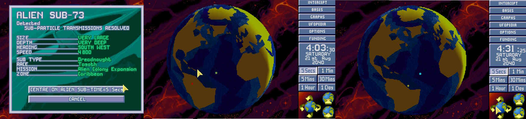 Z wielu miejsc Atlantyku zaczęły napływać raporty o USO. Barracudy wysłano na poszukiwania, gdy o 4:00 sensory z bazy wykryły USO płynące na południe po wschodniej stronie Atlantyku. Zanim Barracudy zdążyły się zbliżyć, utracono kontakt z USO.
