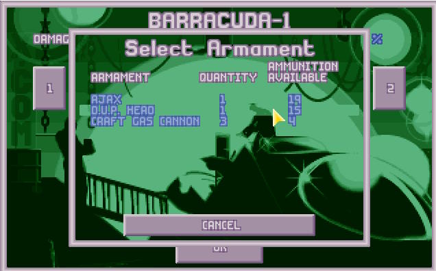 pozwolenie z bazy Barracuda 02 odpalił torpedę w kierunku celu. Barracuda 2 nie była uzbrojona jak Barracuda 1 w torpedy Ajax i działko gazowe (w Brytyjskich Siłach Podwodnych służące do obrony przed torpedami), a w wyrzutnie torped ze zubożonym uranem D.U.P. Kapitan polecił odpalić pierwszą z torped i obserwował na ekranie, jak torpeda zmierza do celu.