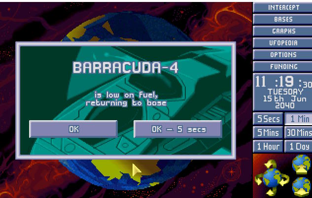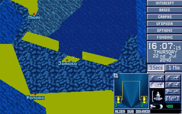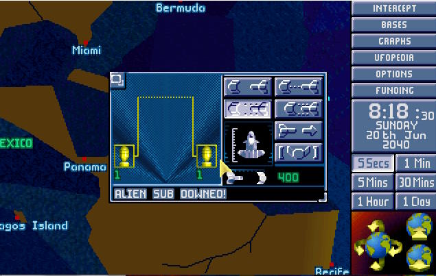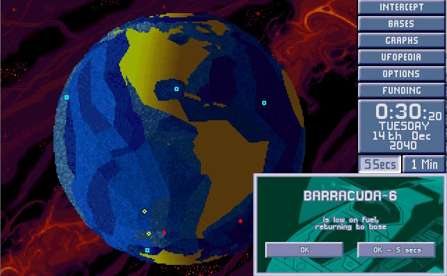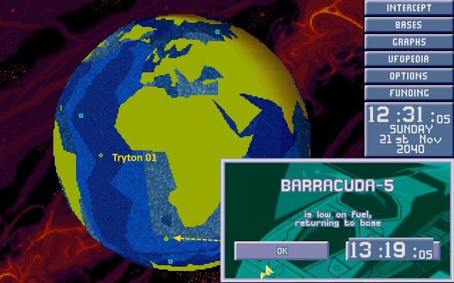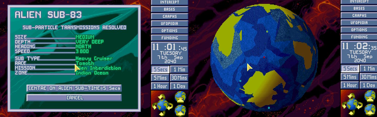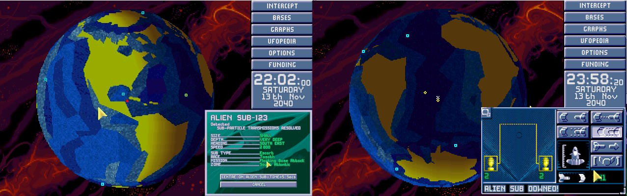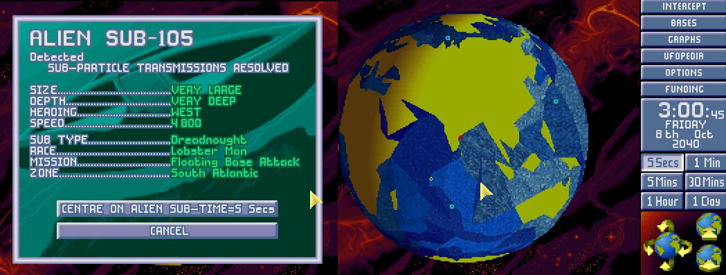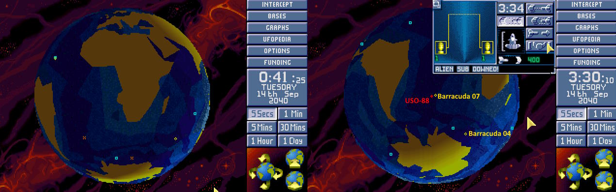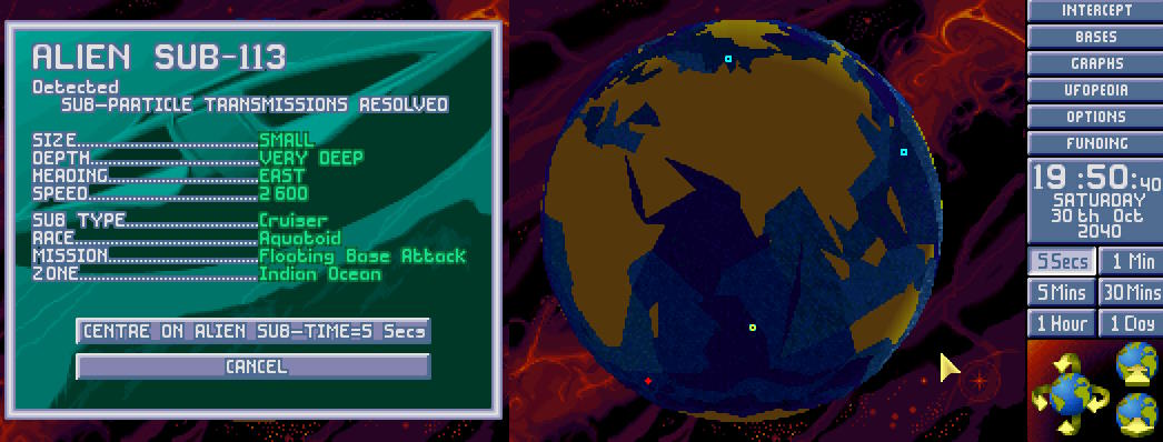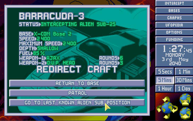W bazie ogłoszono alarm. Na północnym Atlantyku pojawił się nowy USO. Ten był jednak znacznie większy od wcześniejszych. Komandor X-COM nakazał wysłać w pościg obie Barracudy z głównej bazy. 1:30