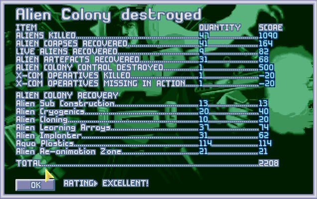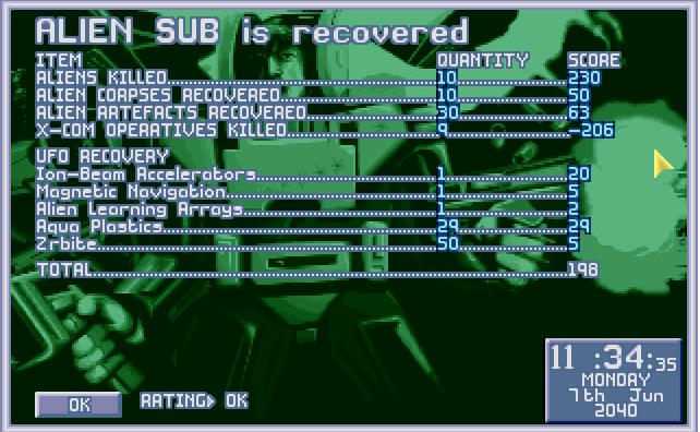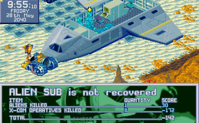 Obcy zażarcie bronili swojego wraku, ale X-COMowi udało się przełamać ich obronę. Niemniej ceną było życie dwóch kolejnych aquanautów