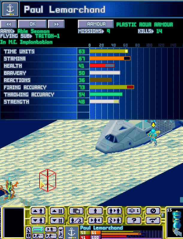 Tryton, łódź transportowa X-COM dotarła nad ranem w pobliże miejsca zatopienia, gdzie wdała się w walkę z obcymi. Dieter Hofner dostał zaszczyt bycia pierwszym Aquanautą, który zabił obcego, a Stefan Berger zdobył niechlubny zaszczyt bycia pierwszą ofiarą reaktywowanego projektu X-COM...