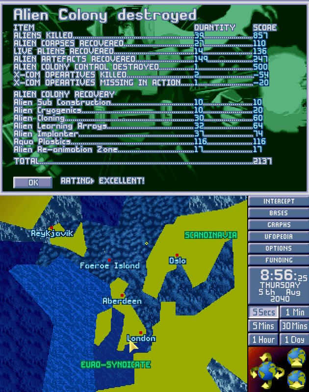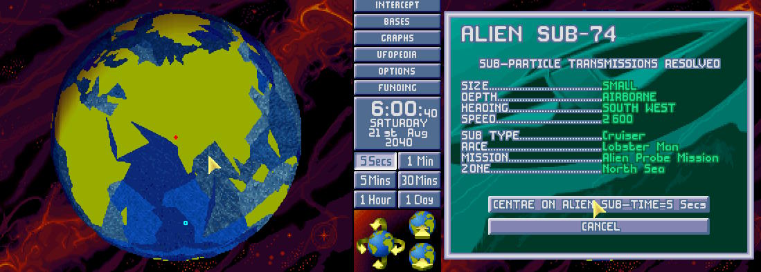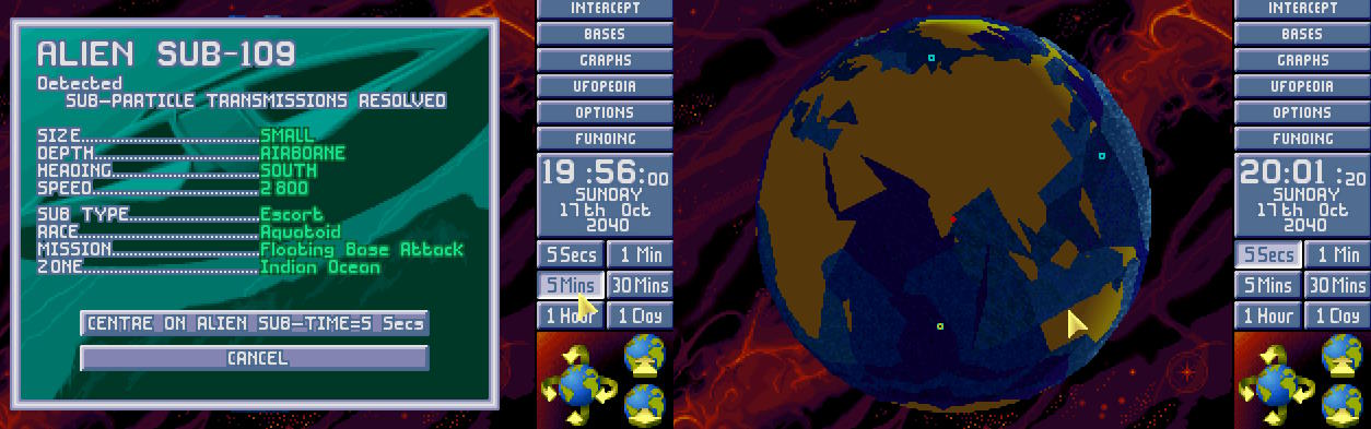 Po godzinie pościgu USO-10 zniknęło z sensorów w okolicy Morza Labradorskiego. Admirał X-COM (świeżo awansowany) polecił kontynuować pościg