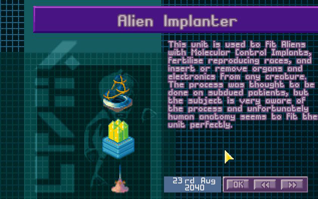 Admirał X-COM zapowiedział na spotkaniu o planie wzmocnienia aquanautów przez instalacje implantów, które mają pomóc im zwiększyć swoje możliwości bojowe. Rada wyraziła zgodę i w bazach X-COM 1 i 2 przystąpiono do budowy laboratoriów MD.