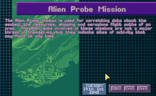 Na spotkaniu Komitetu Obrony Ziemii, admirał X-COM przedstawił raport dotyczący działalności X-COM oraz obcych. Obcy każdego miesiąca udawali się na inny akwen, jakby badali w którym miejscu mogą zadać cios. Jednak ich aktywność została ograniczona w marcu...