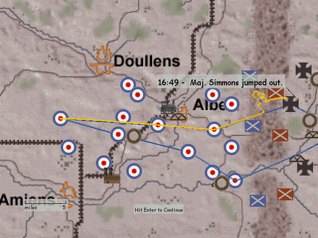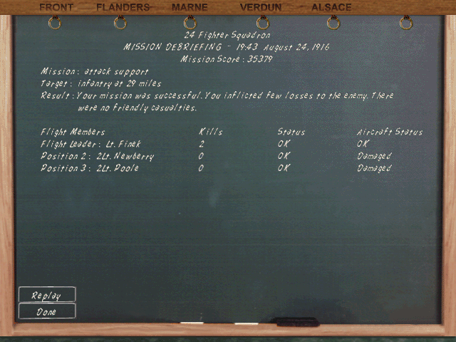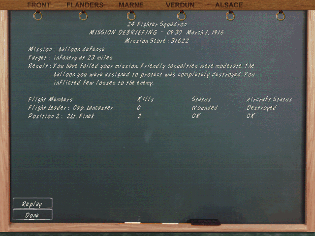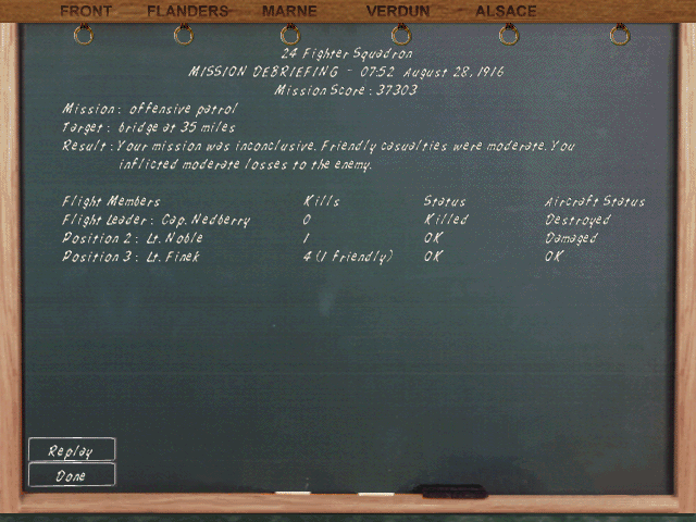 Porucznik walczył z francuzami przeciw bombowcom i przepadł za liniami wroga (moim zdaniem 1 mogli mu zaliczyć). Podporucznik Nedberry zginął, gdy KM z ziemi podpalił mu maszynę i musiał skakać. Tylko ja ocalałem...