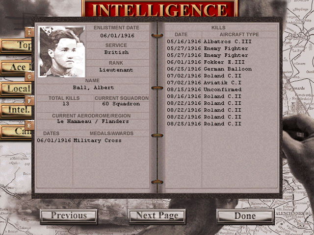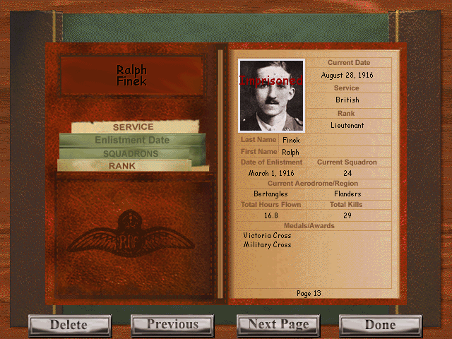 Ralph Finek dołączył do 24 Eskadry na początku jej formowania i w pierwszy lot poleciał 1 marca 1916. Wówczas misję uznano za nieudaną. Zestrzelono 2 Fokkery, kapitan Lancaster się rozbił, a Ralph zestrzelił te 2 samoloty... Dopiero później dowiedziano się, że w tym locie zestrzelił Maxa Immelmana i Oswalda Boelckego, czołowych asów Kaisera... Później zaczął pisać swój pamiętnik...