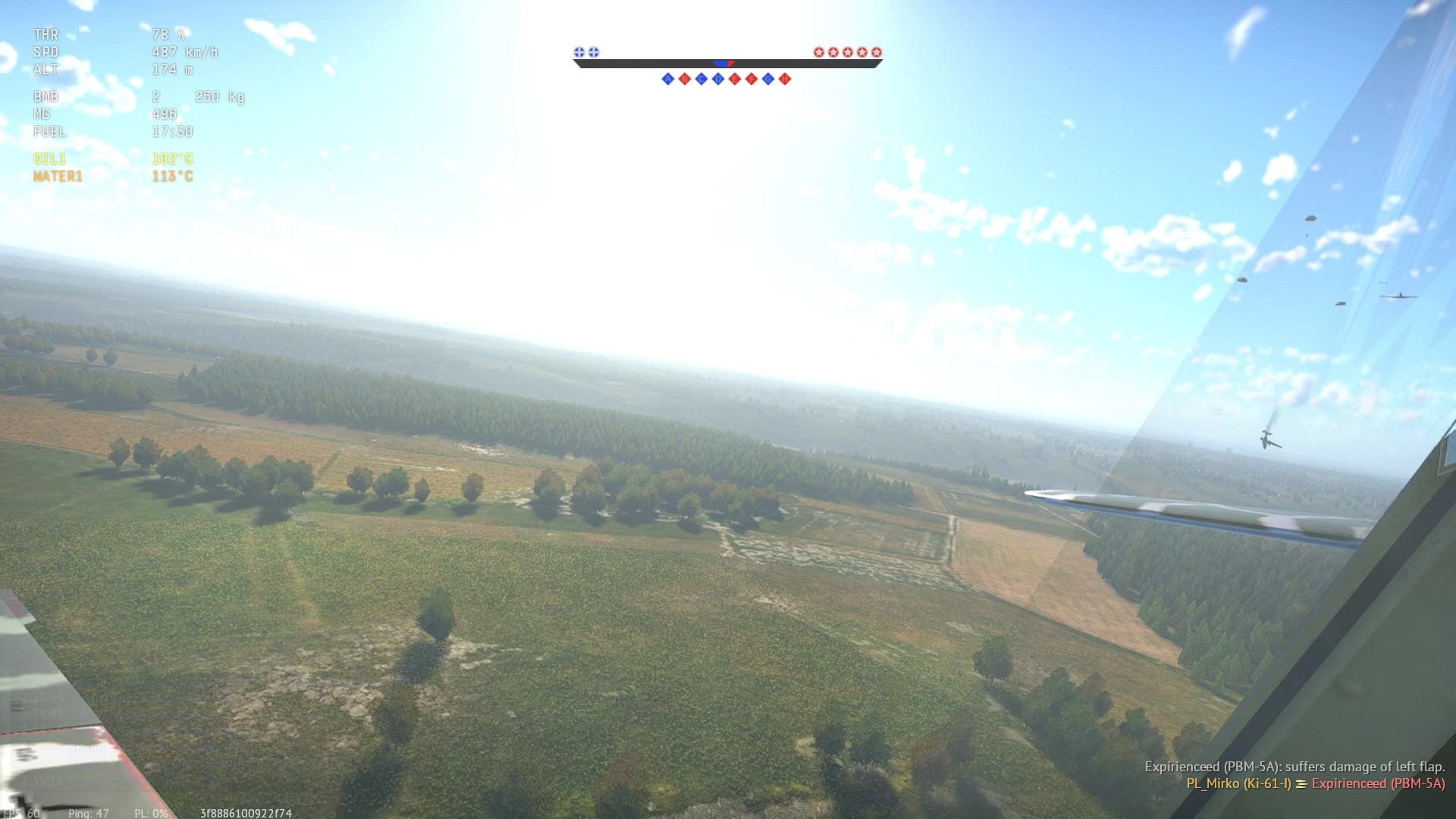 Gracz bardzo dobry - egzaminował mnie w umiejętności manewrowania Ki-61. Kręcił mną tak, że tylko maksymalna koncentracja pozwoliła mi go "dopaść" w obu przypadkach.