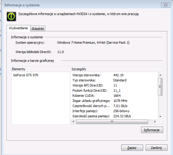 Generalnie wszystko mam pod kontrola aplikacji i tylko dodatkowo, czego nie widać to głębia kolorów 16 BBP. Z tym, że moja karta jest dość leciwa i stary do nie j nie miały aktualizacji od kilku ładnych lat.