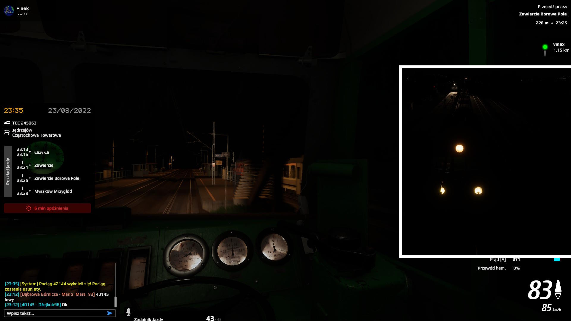 Do Dąbrowy Górniczej zmniejszyłem opóźnienie do 13 minut... ale tu znów był ustawiony towarowy w poprzek i musiałem go przepuścić