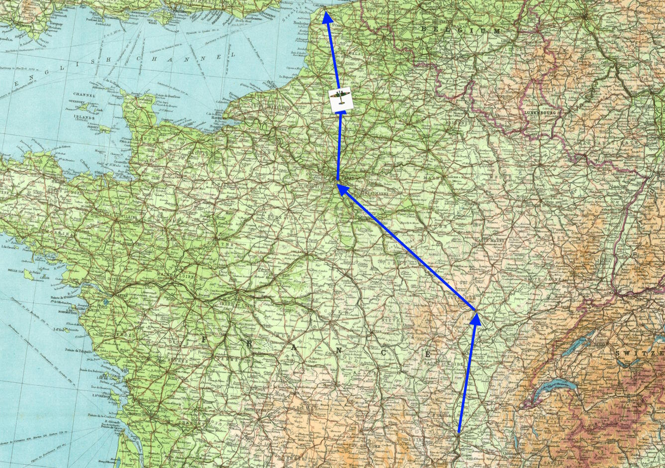 -Pod nami Amiens. - zameldował specjalista Marcel Leon Dargaud, podczas gdy Feliks cały czas obserwował samolot swojego prowadzącego, porucznika marynarki Alberta Juliena Folliota. Nie było po co patrzeć w dół, gdyż poza nielicznymi przerwami w chmurach, pod nimi było widać tylko białe obłoki. Najbardziej Feliks żałował jednak Paryża, który też skrywał się już pod obłokami. A tak liczył na obejrzenie z wysoka Wieży Eiffla. Lecieli tak już ponad 2 godziny, a wskazówka paliwa tylko nieznacznie odchylała się od końca. I to było właśnie to, co Feliks tak cenił w nowym samolocie. Lecąc spokojnie mogli oblecieć całą Francję. Przed nimi było jeszcze około 30 minut lotu i dowódca zameldował w radio: