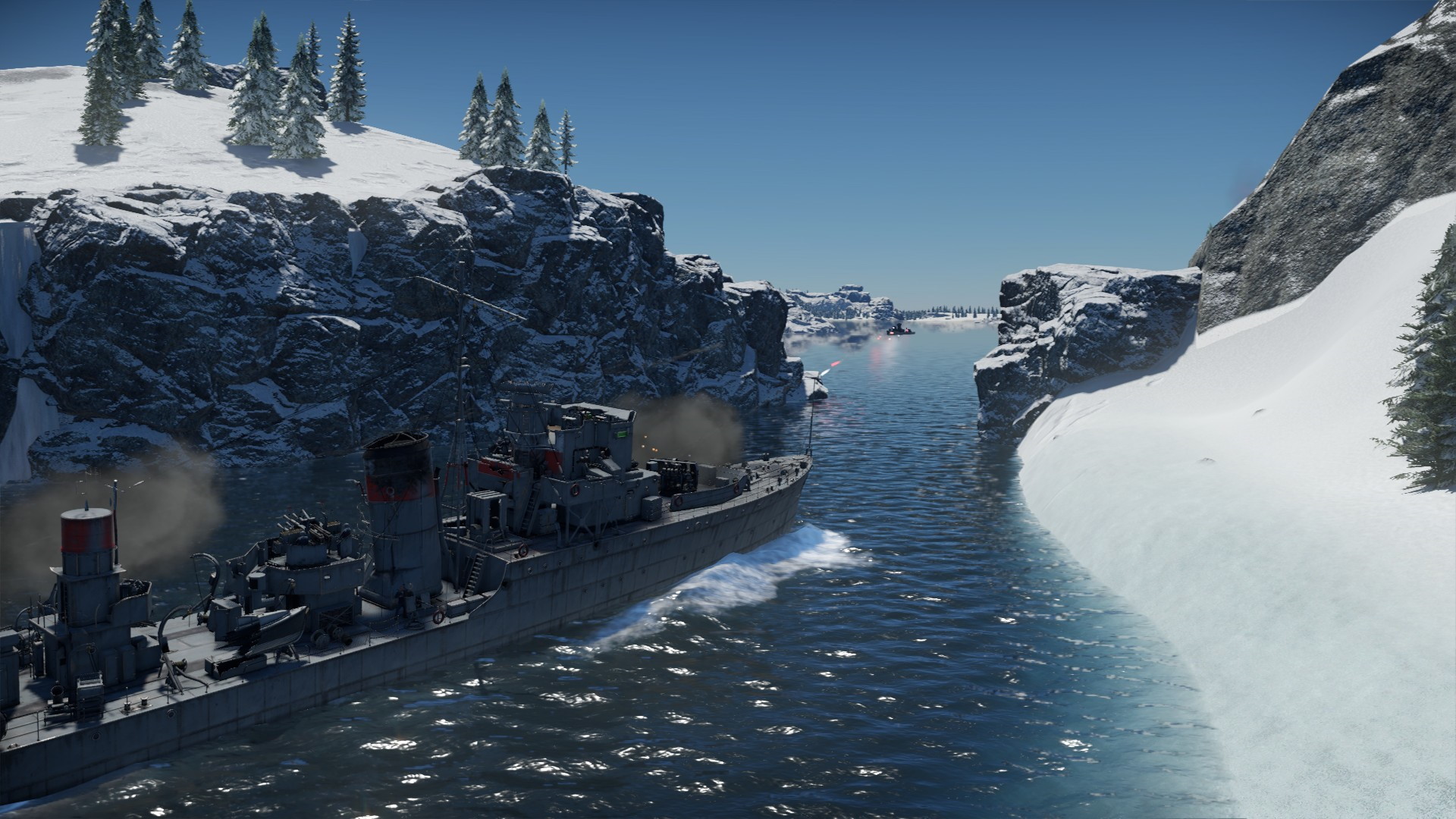 Na wroga nie trzeba było długo czekać. Zbliżaliśmy się do wejścia do portu, gdy nasze kutry pilnujące przejścia dostały się pod ostrzał, a po chwili zza oblodzonych skał, wyłonił się pierwszy niszczyciel...