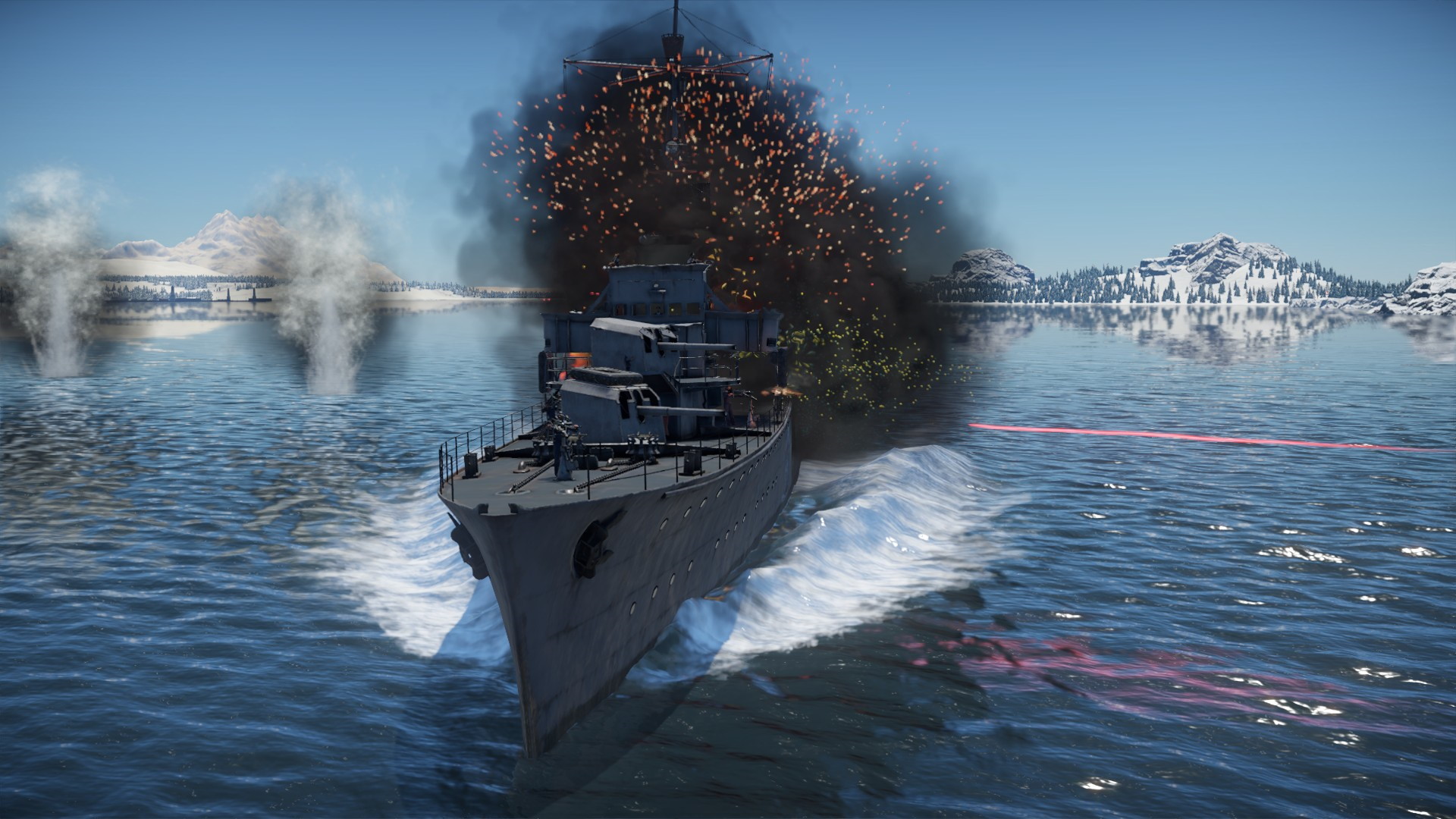 Czołowy niszczyciel wrogie eskadry znalazł się pod huraganowym ogniem....