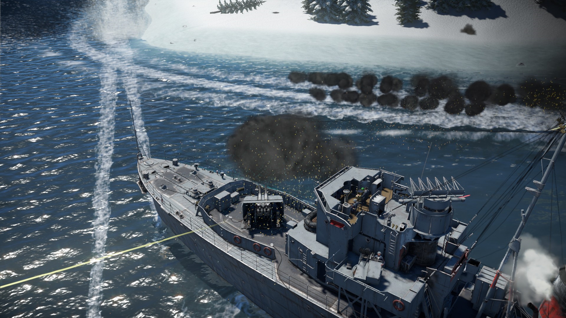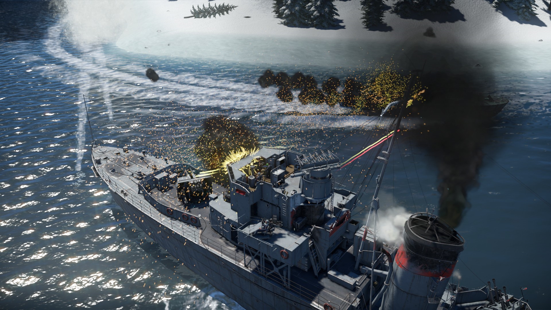 Nie mogliśmy jednak oglądać tego pięknego widoku, gdyż iNavy przypuściło kolejny atak. Kuter torpedowy wyskoczył naprzeciw nas, strzelając z działek i wypuszczając torpedy...