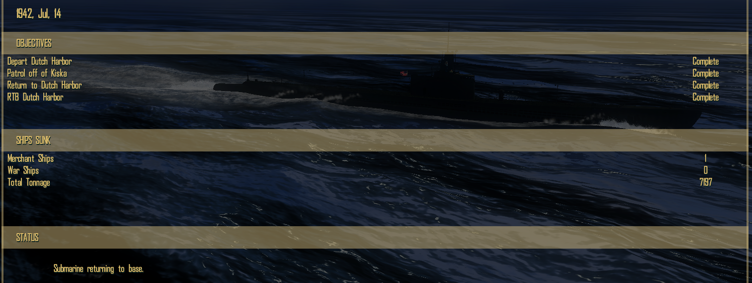 W końcu paliwo zaczynało kończyć, a torped zostało zaledwie sztuk dwie. Ruszyliśmy do domu mając na koncie wykonane 4 zadania.