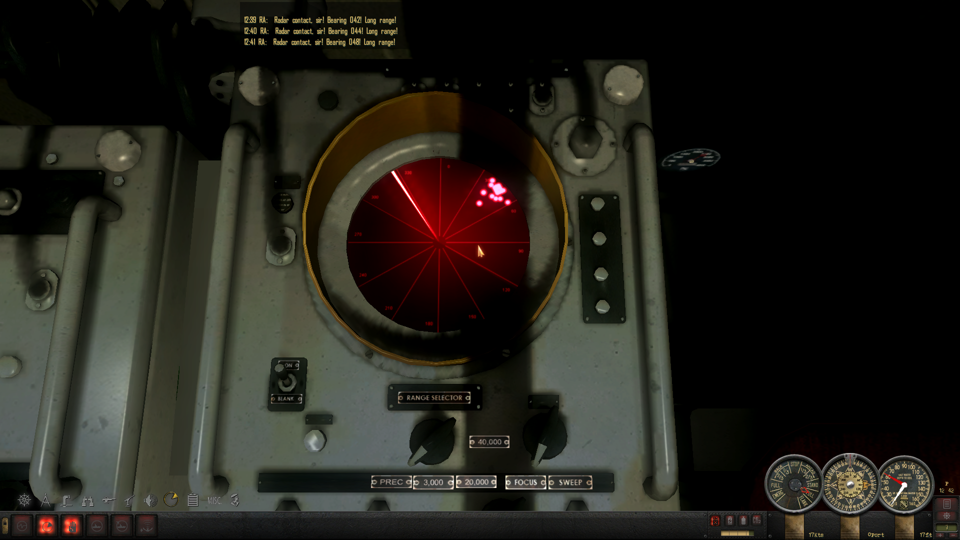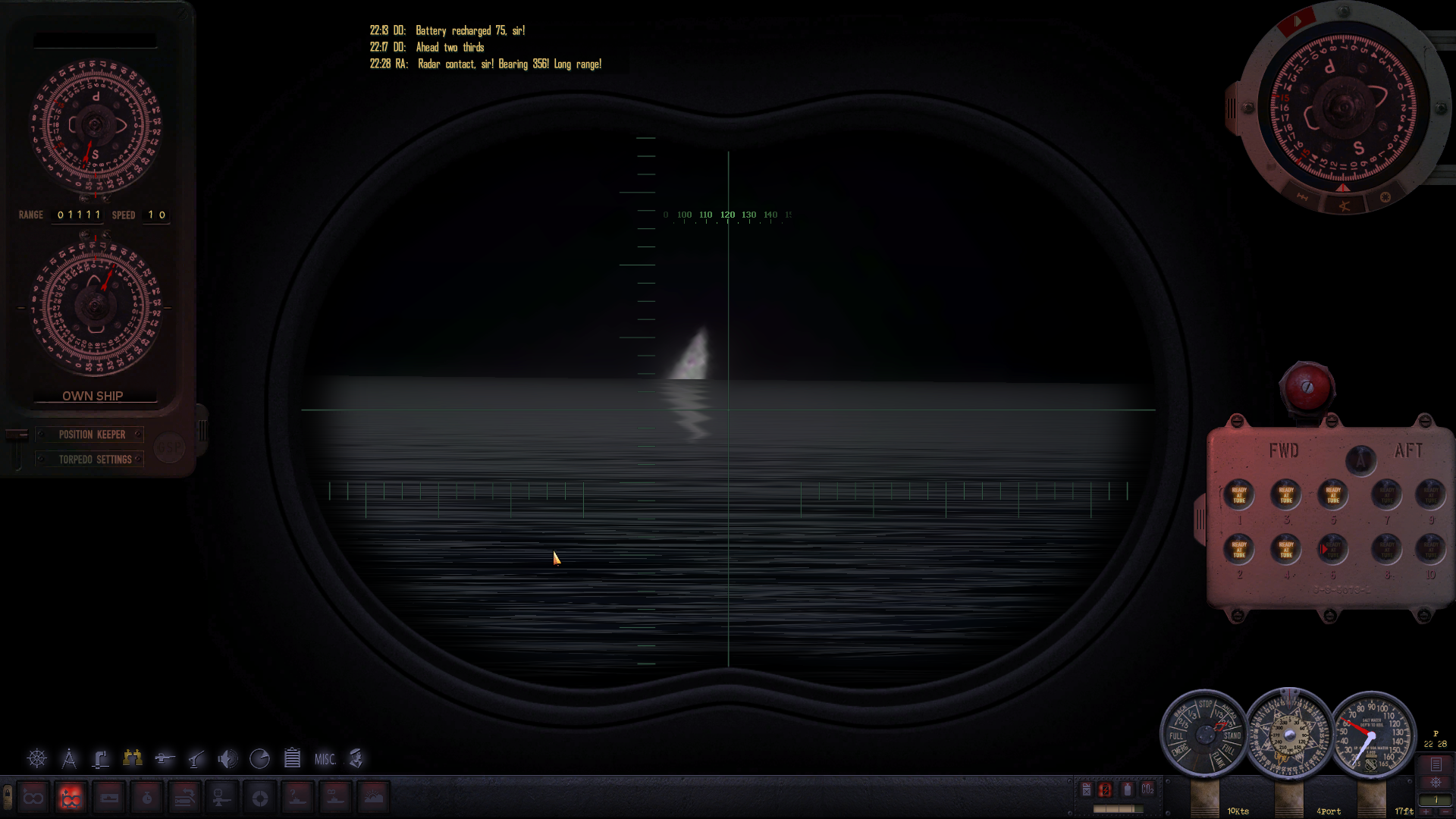 Zmieniam kurs, gnamy z pełną prędkością aby wyprzedzić konwój i zająć dogodną pozycję do ataku podwodnego, zanim nas wykryje eskorta nieprzyjaciela. Za kilka godzin zacznie świtać. Wykrywamy fale radarowe - konwój musi być osłaniany przez niszczyciele!