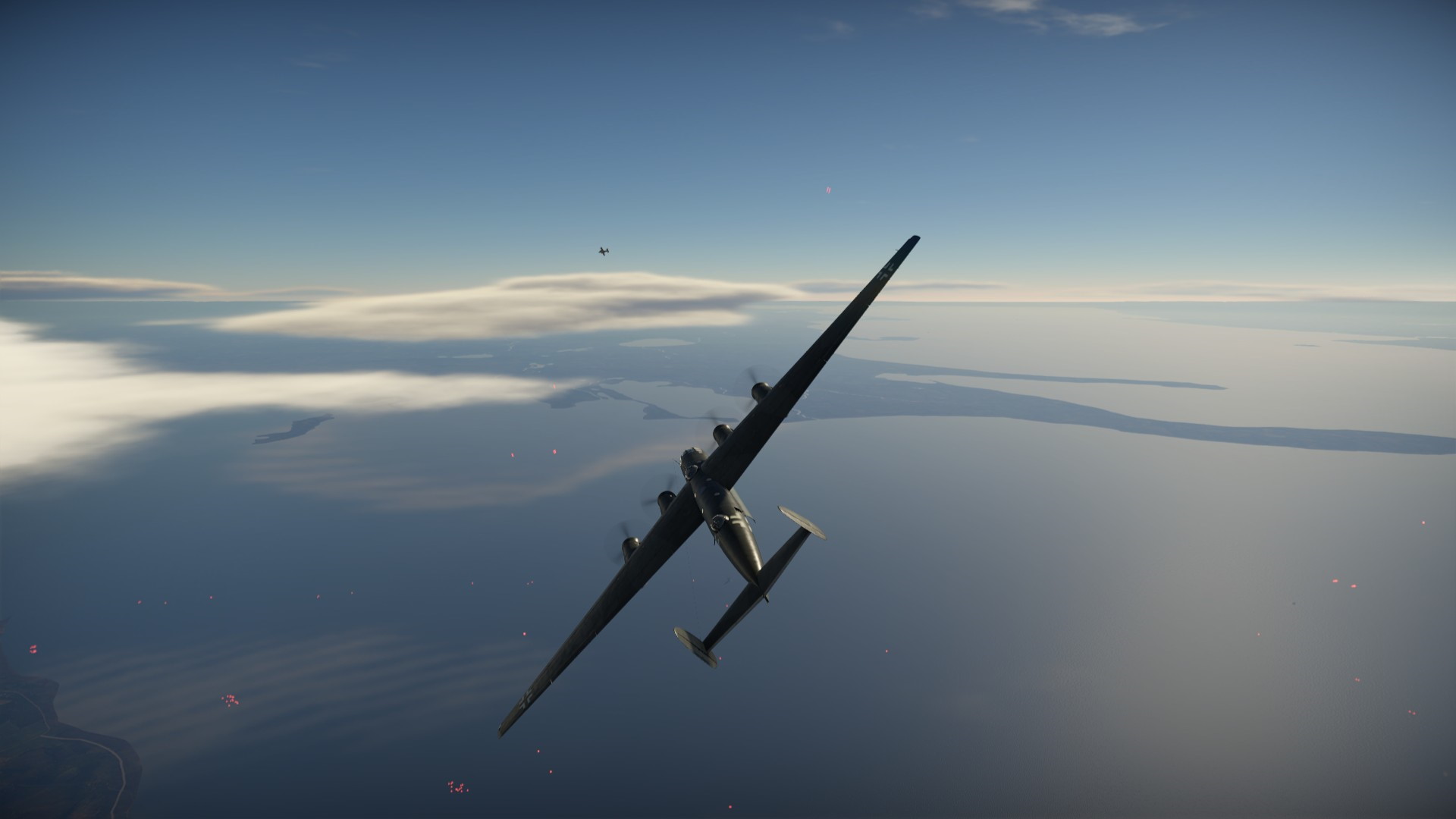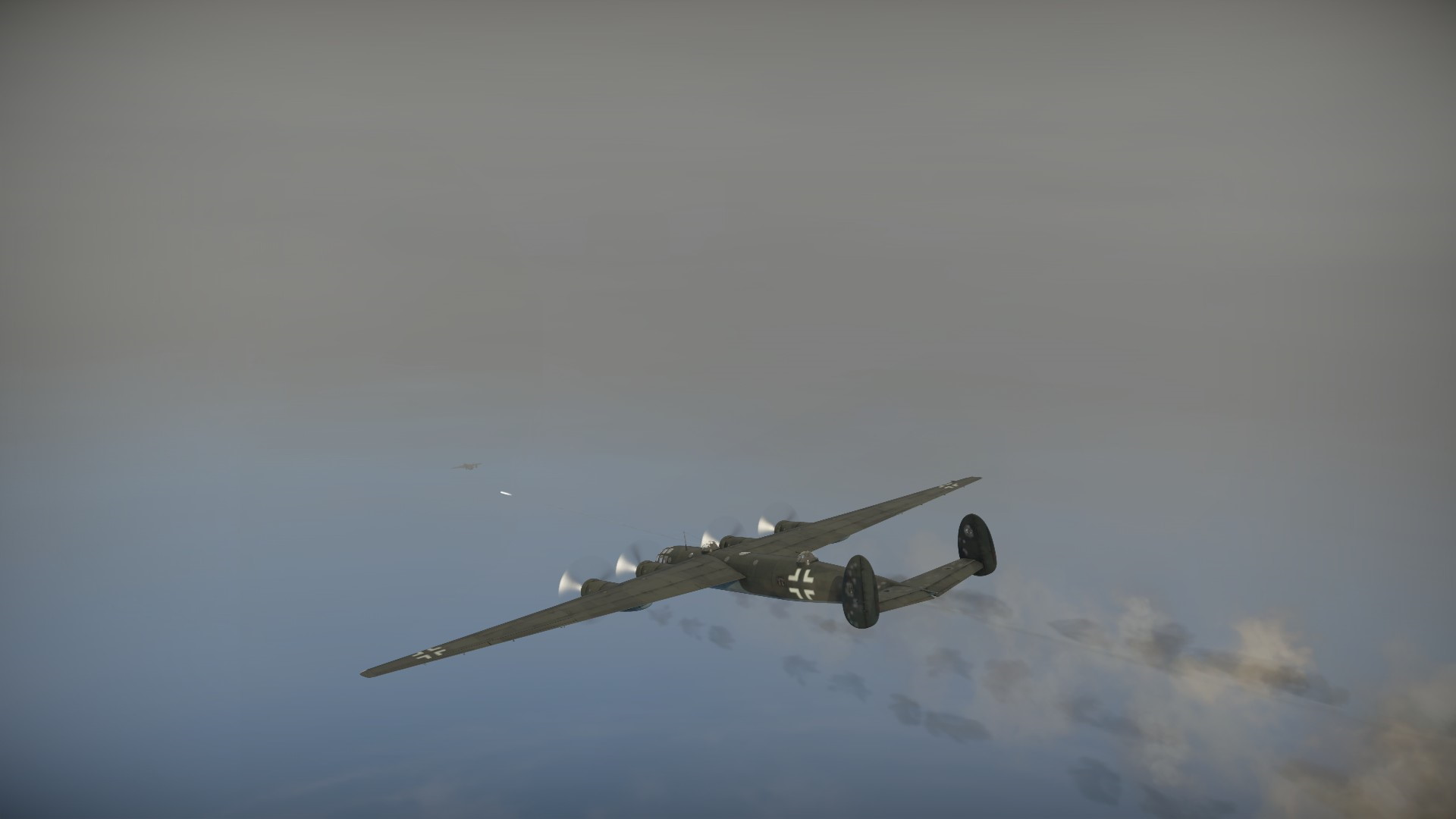 Wróg jednak nie chciał odpuszczać... Mieliśmy tylko jedną przewagę... Jego ciemny kształt odznaczał się na jaśniejszym tle... Rozpoczęła się walka w chmurach...