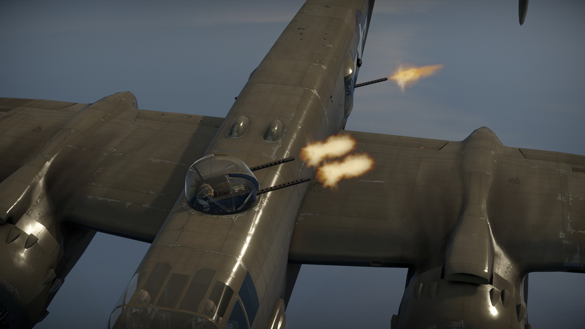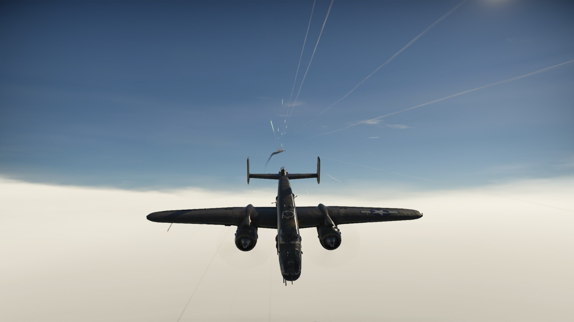 Wielki samolot zajmował miejsce za nami, ścigany naszymi seriami... Taśmy jednak zaczynały się kończyć, a wróg tylko czekał na moment przeładunku...