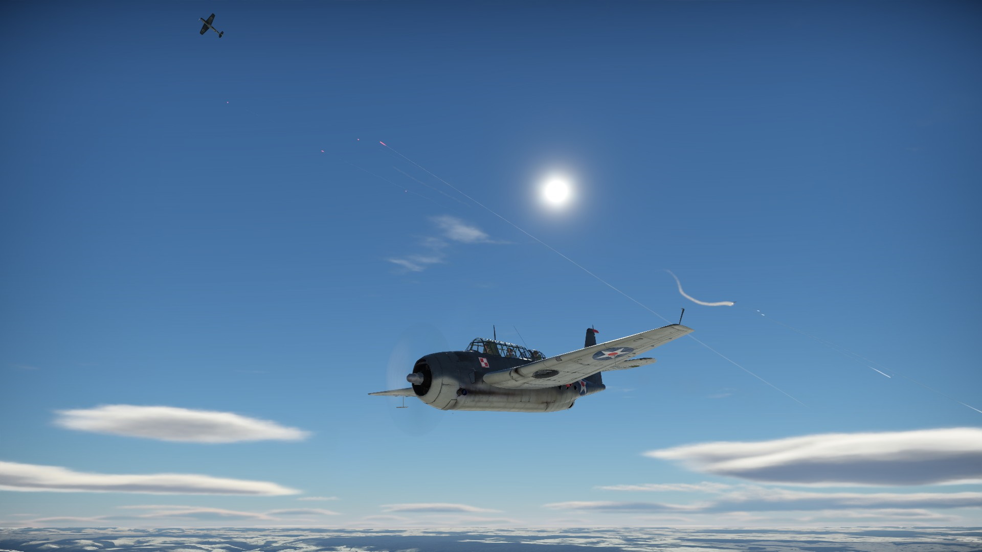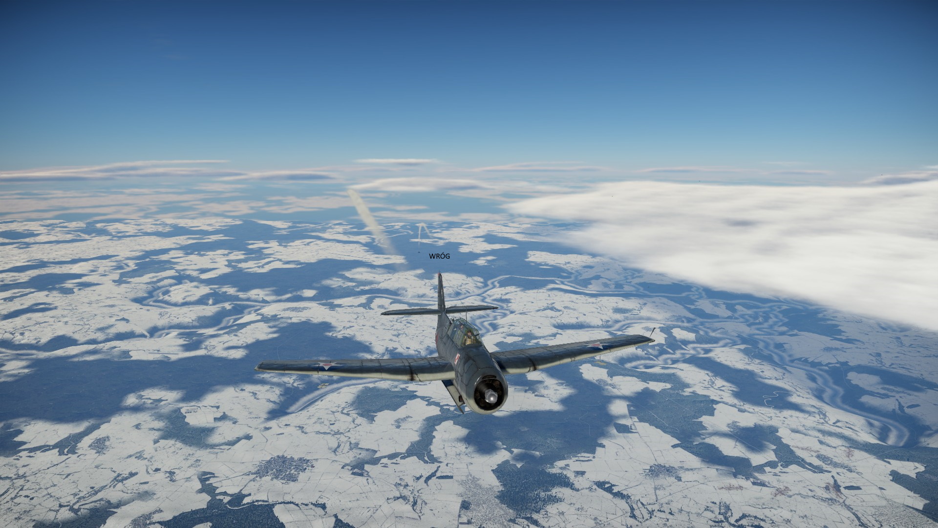 Przewaga prędkości wroga, spowodowała, że na chwilę znalazł się przed nami. Nie mogłem przepuścić tej okazji i zaatakowałem go z KMów, niestety, ociężałość TBF nie pozwoliła na więcej efektu, niż pokazanie wrogowi, że jesteśmy zdeterminowani walczyć.