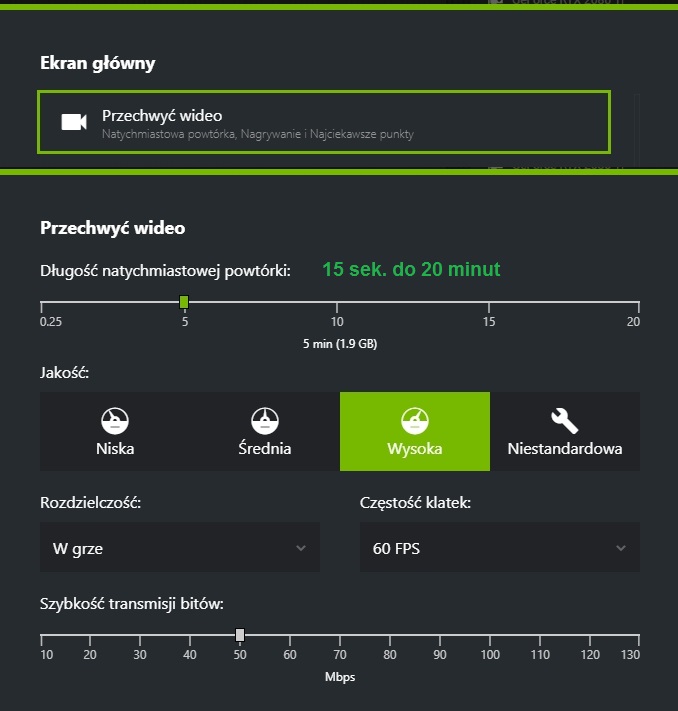 5. Ciekawe punkty. Wiem, że Jacek z tej funkcji ShadowPlay korzysta, u mnie wyłączone - sam decyduję kiedy program ma zapisać film.