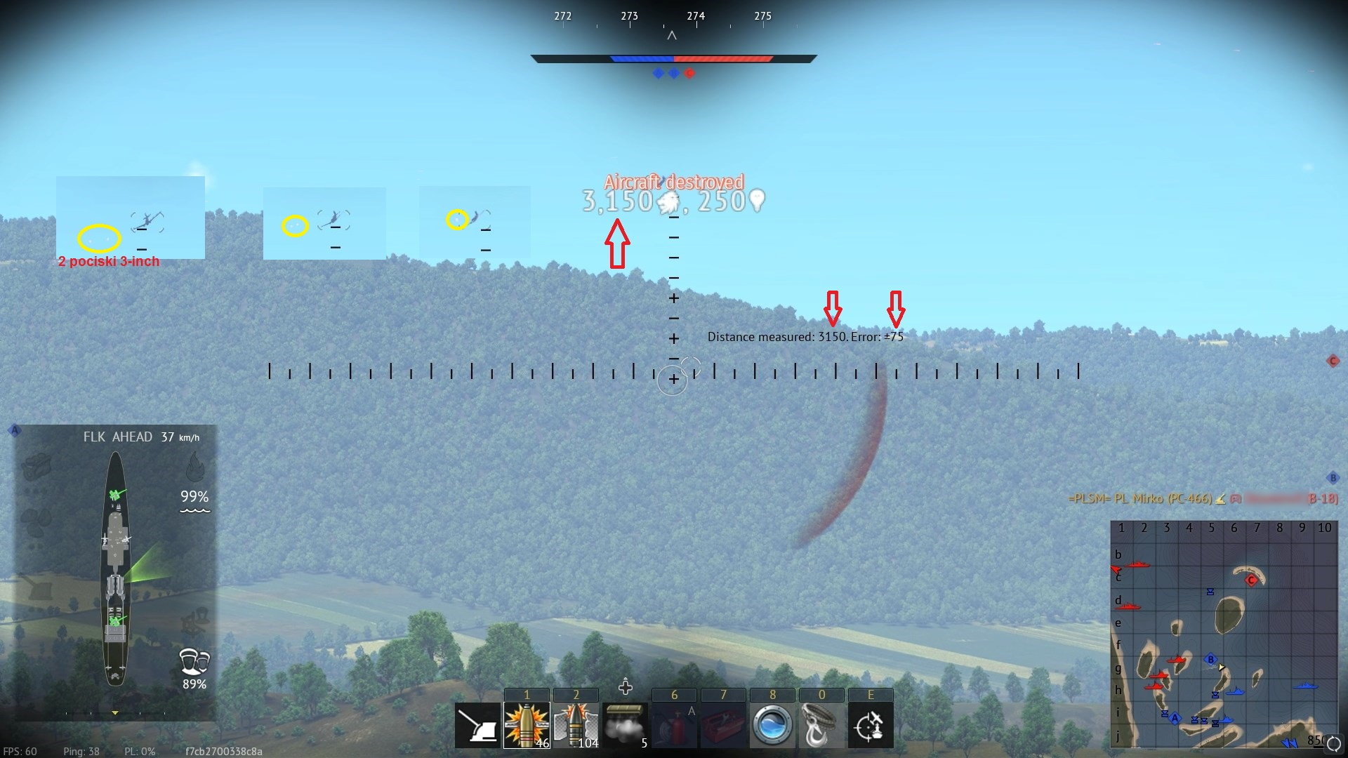 Jak wygrana w To-To - dzisiaj z odległości 3150 metrów udało mi się zestrzelić bombera B-18 przy użyciu artylerii głównej PC-466 Carmi.