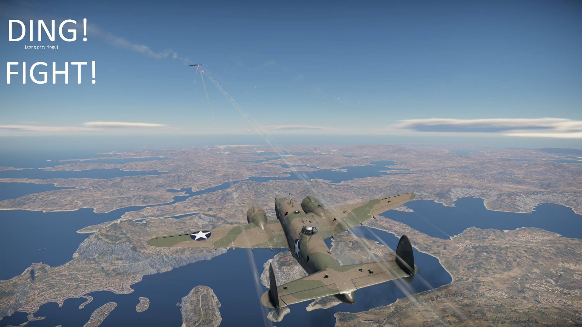 Próbowałem wykonać zwrot, aby utrudnić mu celowanie... jednak na razie to więcej pocisków trafiło w nas, niż we wroga... Jeden z silników zaczął dymić Szczęśliwie nie oberwał żaden strzelec...