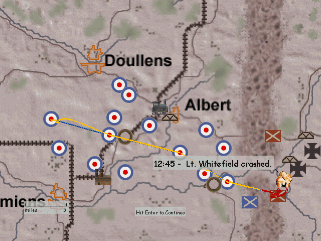 Porucznik walczył z francuzami przeciw bombowcom i przepadł za liniami wroga (moim zdaniem 1 mogli mu zaliczyć). Podporucznik Nedberry zginął, gdy KM z ziemi podpalił mu maszynę i musiał skakać. Tylko ja ocalałem...