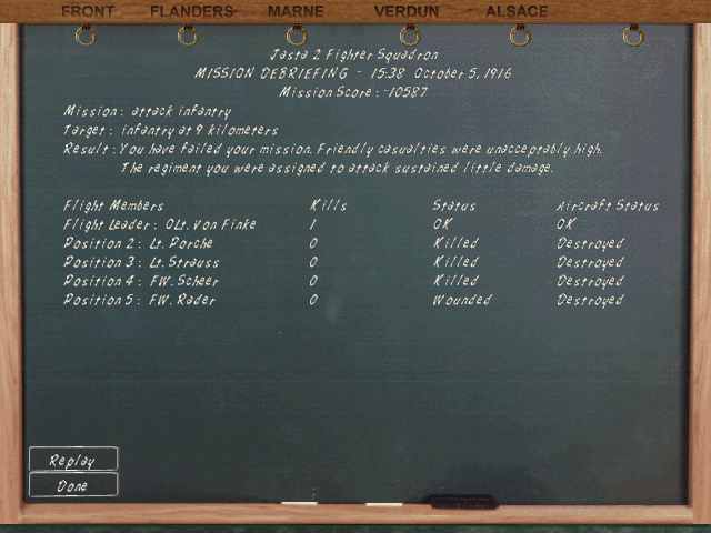 I znów w dowództwie to samo... Misja nieefektywna. Balon i 3 myśliwce zestrzelone (nie licząc pomocy Francuzom) za utratę 2 pilotów i maszyn... Niemcy stracili 3 bombowce za cenę 2 myśliwców Ententy!