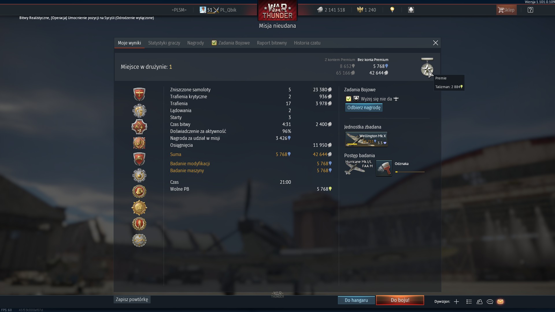 W evencie „Bitwa o Anglię” zdobyłem premkowego Hurricane’a Mk.I/L FAA M.