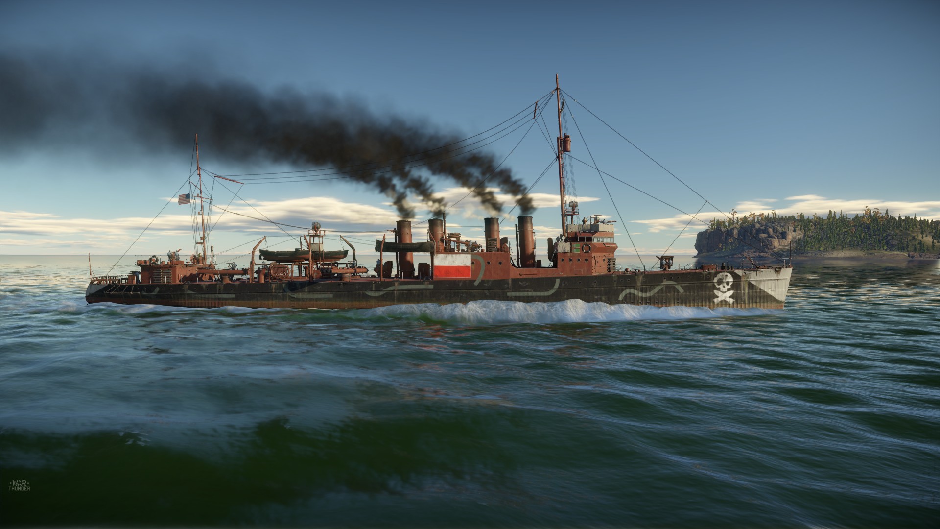Okręt z japońską banderą na flagsztoku, trzema chińskimi flagami na burcie i choinką na dziobie?!!!