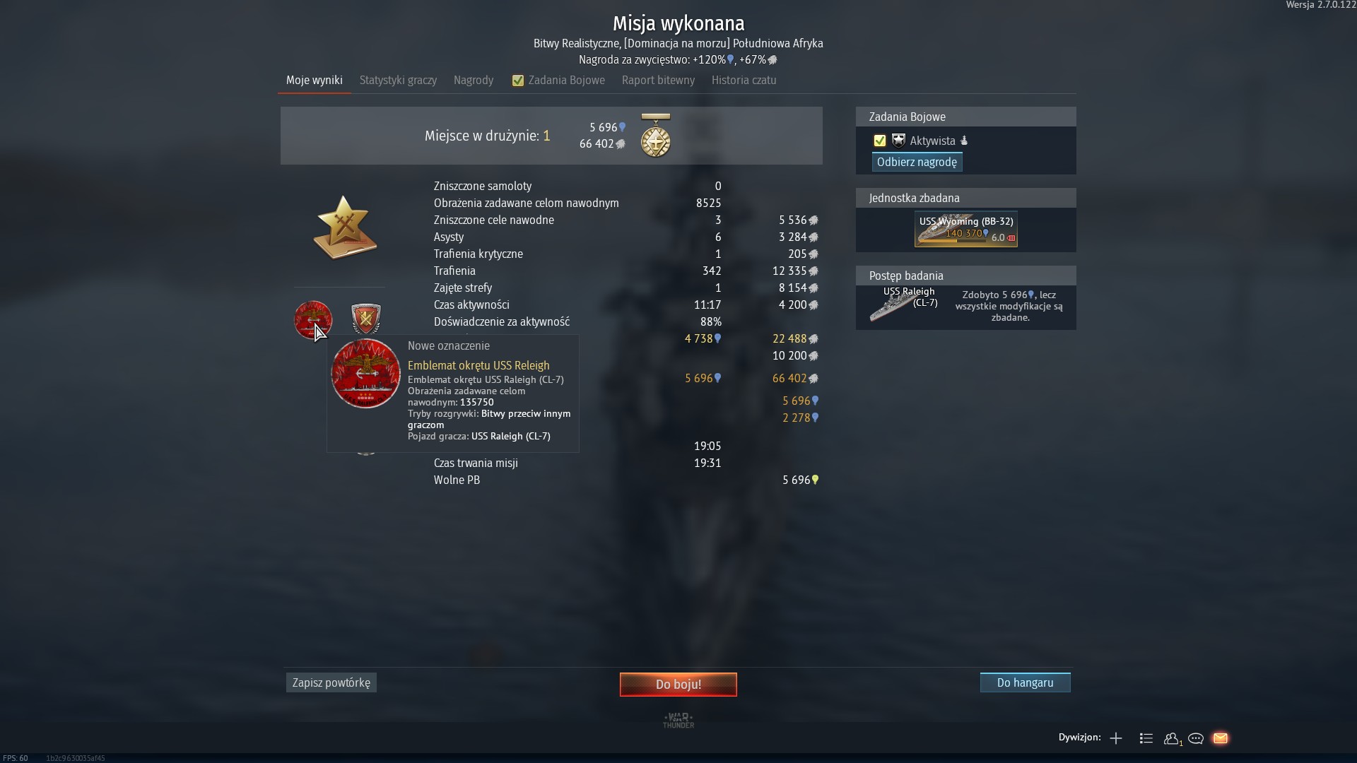 Za to mozolne wyoranie dziobem w falach oceanów tych 135 750 obrażeń - TO JEST SATYSFAKCJA!