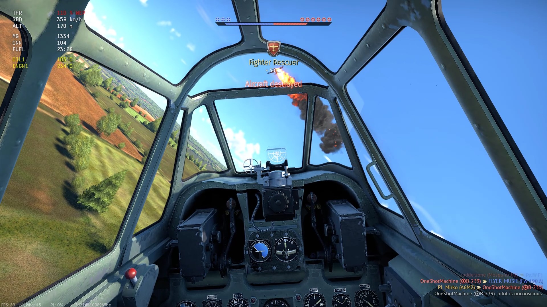 Gdy zbliżam się niziutko, cichutko do miejsca walki, "kotła" (z eng. "furbal"), kolor pocisków smugowych pozwala mi wstępnie określić kto wróg a kto przyjaciel.