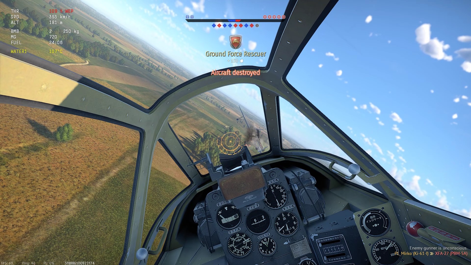 Gracz bardzo dobry - egzaminował mnie w umiejętności manewrowania Ki-61. Kręcił mną tak, że tylko maksymalna koncentracja pozwoliła mi go "dopaść" w obu przypadkach.