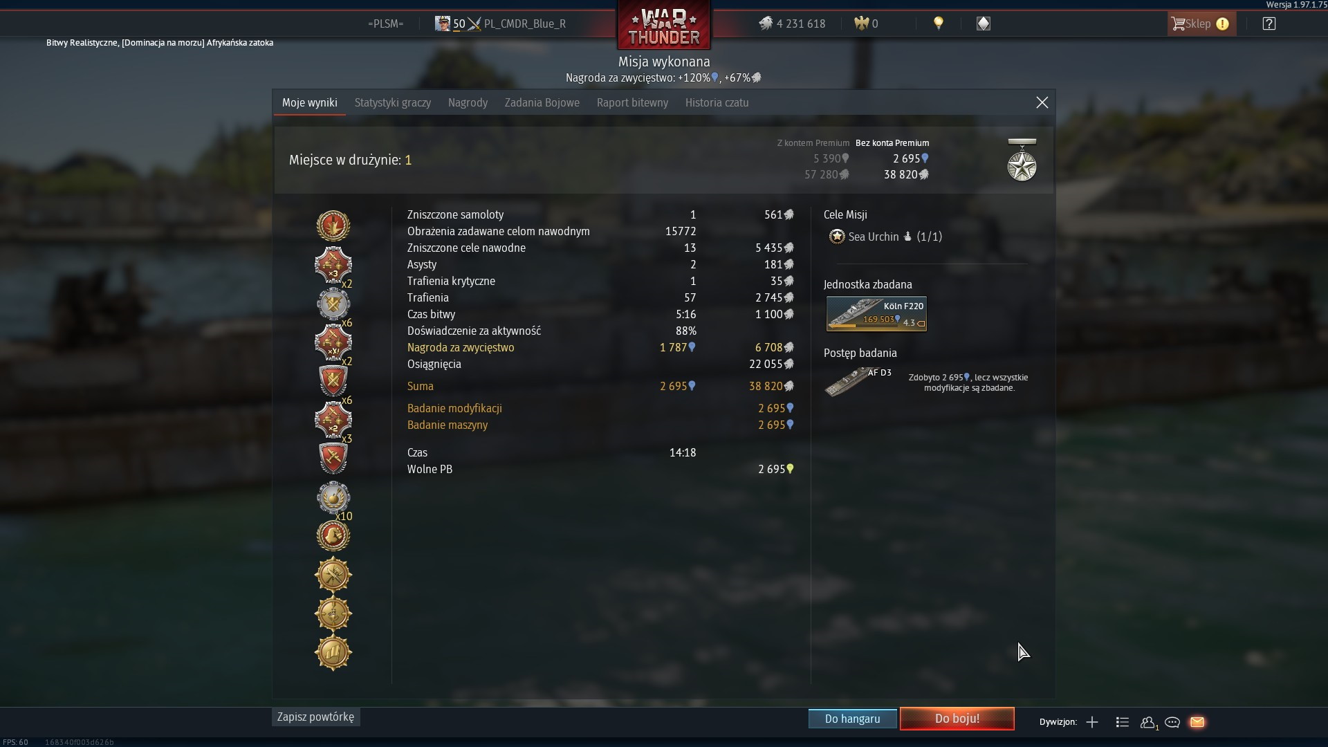 Brakło sekund, abym to ja go zatopił...Tak to "tylko" 6000 obrażeń.