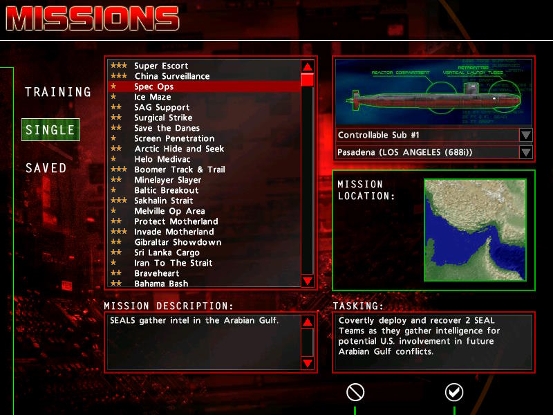 Tutorial, może jakaś misja na początek... O! Podrzucenie SEALs! Odpalam i... eeee.... 688(I)H/K było lepsze...
